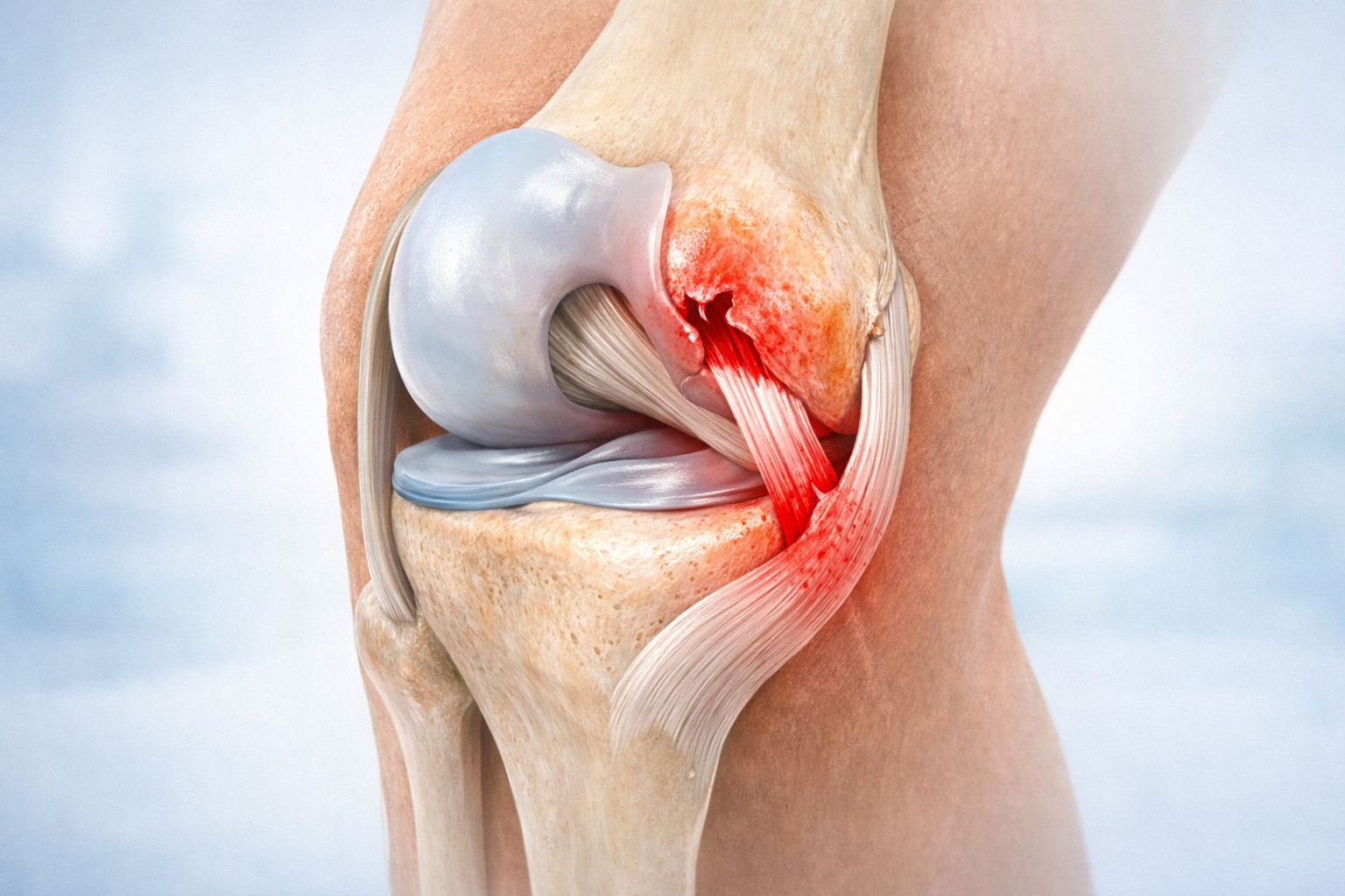 Knee ligament injuries like ACL, PCL, MCL, and meniscus tears are commonly caused by sports injuries, road traffic accidents, falls from height, degenerative changes, or inflammatory conditions.
